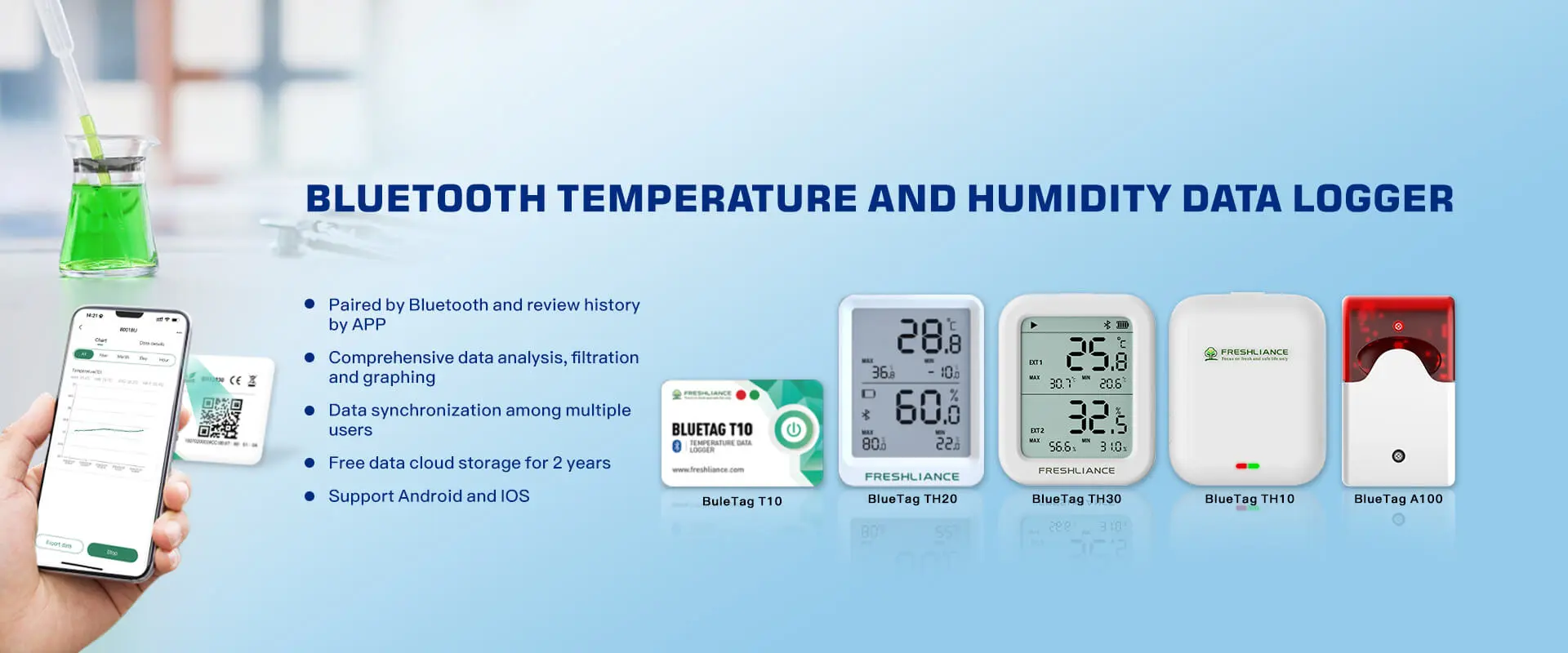 دیتالاگر دما Blue Tag-TH20 محصولی پیشرفته از کمپانی معتبر FRESHLIANCE است که با بهرهگیری از فناوری بلوتوث نسخه 5.2، امکان پایش دقیق و لحظهای شرایط محیطی را فراهم میسازد. این دستگاه با طراحی جمعوجور، صفحه نمایش LCD و قابلیت ذخیرهسازی بیش از ۶۵۰۰۰ قرائت، گزینهای ایدهآل برای کنترل دما و رطوبت در محیطهای حساس به شرایط اقلیمی محسوب میشود. با پشتیبانی از اپلیکیشن اختصاصی TKEEPER، کاربران میتوانند بهراحتی دادهها را مشاهده، تحلیل و گزارشگیری کنند. این دستگاه با استانداردهای بینالمللی CE، FDA و EN12830 مطابقت دارد و برای استفاده در صنایع دارویی، غذایی، کشاورزی و حملونقل بسیار مناسب است.